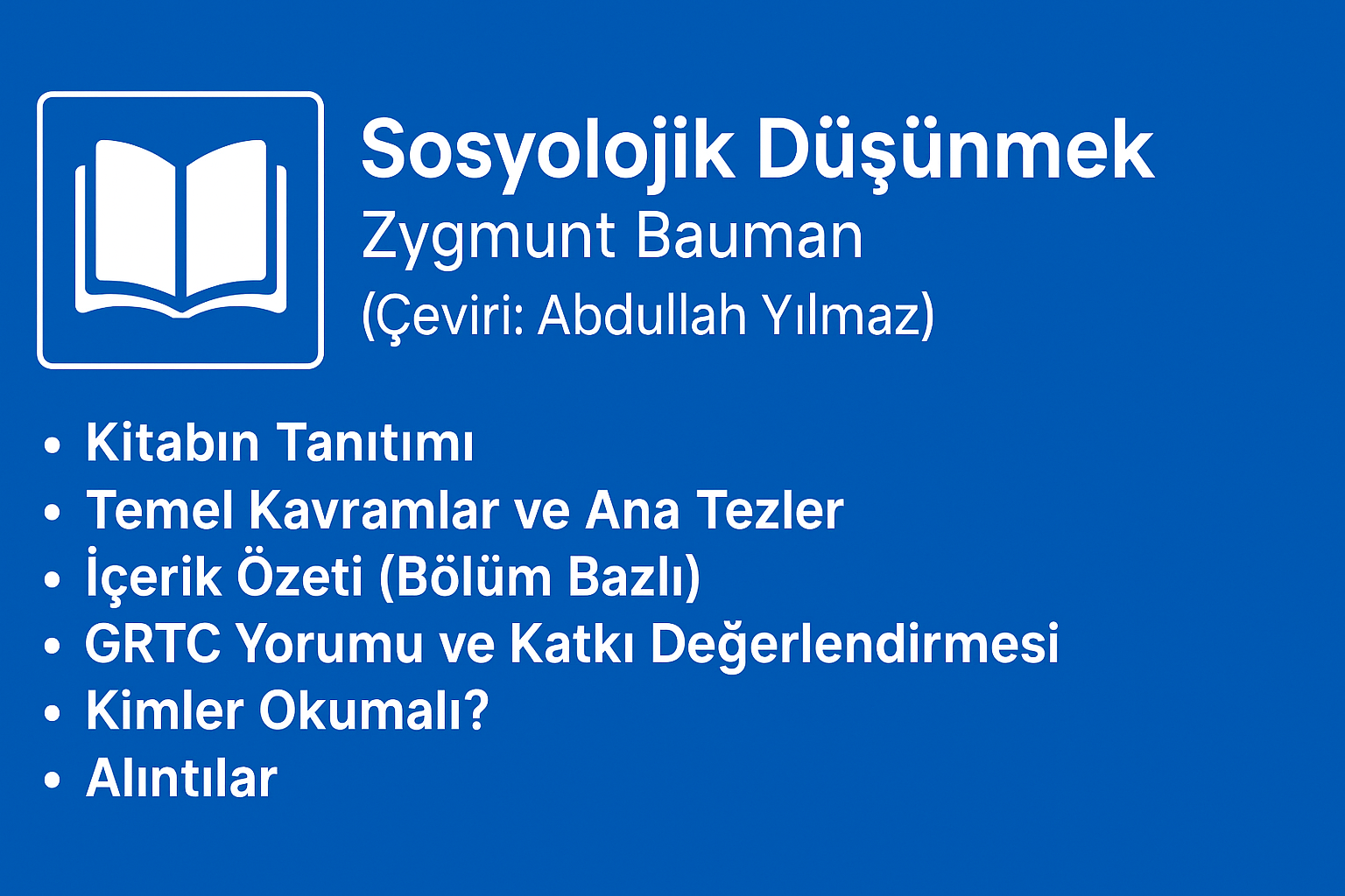 GRTC’nin savunduğu gibi, bilim yalnızca akademik bir faaliyet değil; toplumla sorumluluk ilişkisi içinde yürütülmelidir. Bauman da benzer şekilde sosyolojiyi, bir tür ahlaki görev olarak görür. Bu eser, genç araştırmacılara düşünsel bir pusula, akademisyenlere ise eleştirel hatırlatmalar sunar. Özellikle günümüz toplumlarında kimlik, ötekilik, iktidar ve gündelik yaşam ilişkilerini kavramak isteyen herkes için Sosyolojik Düşünmek, dönüştürücü bir başlangıç noktası olabilir.